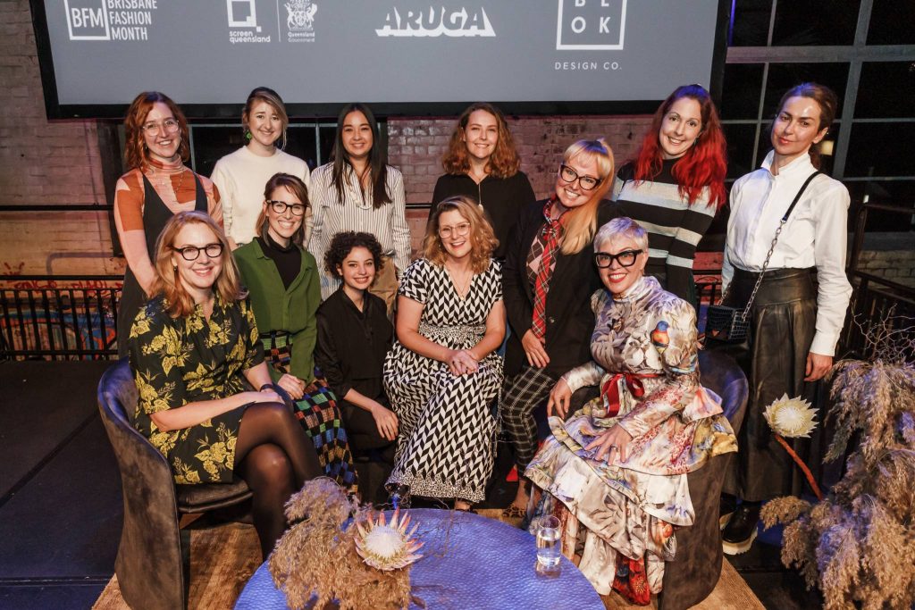 FRONT ROW: Screen Queensland CEO Kylie Munnich, Chloe Greaves, Ella Lincoln, Helen O’Loan, Cindy Vogels, Catherine Martin.